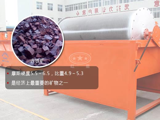 赤鐵礦化學成分為Fe2O3、晶體屬六方晶系的氧化物礦物。摩斯硬度5.5~6.5,比重4.9~5.3。赤鐵礦是廣泛地分布在各種巖石當中的副礦物,它以細分散粒狀出現在許多火成巖中,在特殊的情況下,在區域變質巖中形成巨大的塊體。赤鐵礦是經濟上比較重要的礦物之一。因此,在是鐵礦的開采中就需要用到磁選赤鐵礦的設備。