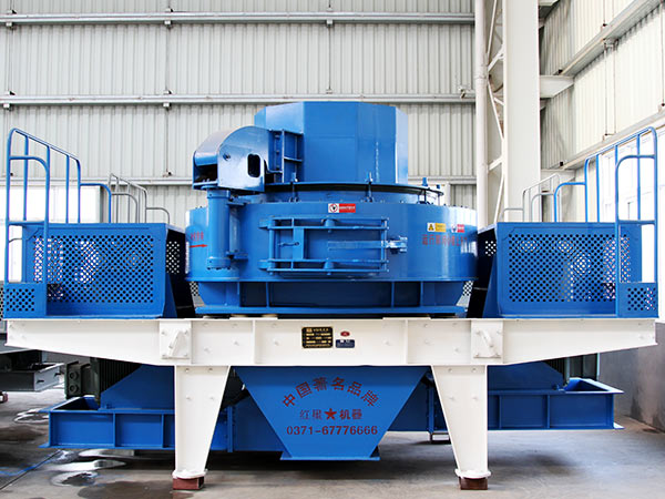 花崗巖制砂機工作時,物料首先由機器上部垂直落入高速旋轉的葉輪內,接著在高速離心力的作用下,與另一部分以傘狀形式分流在葉輪四周的物料發生撞擊,之后在葉輪和機殼之間形成的強大渦流中,再次或多次進行互相撞擊、摩擦,粉碎。最后從花崗巖制砂機下部的排料口排出,再由篩分設備控制達到所要求的成品粒度。